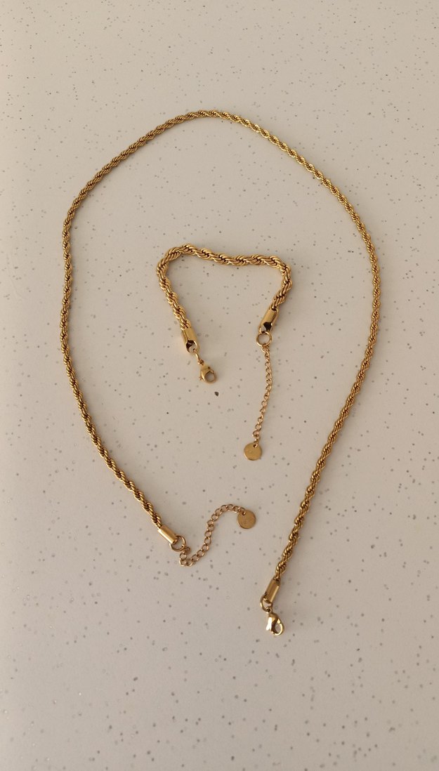 hem bileklik hem kolye Çelik kararma yapmaz az kullanıldı