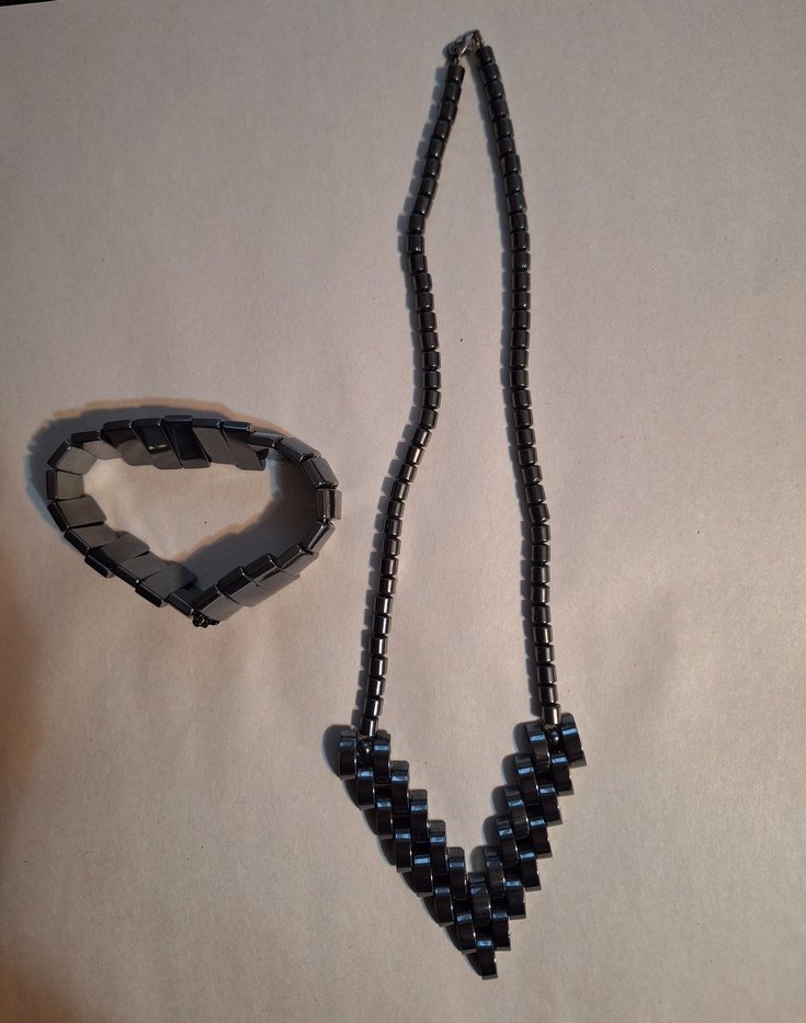 Hematit kolye ve bileklik seti, cesur ve yenilikçi tasarımıyla modaya yön verenler için uygun.