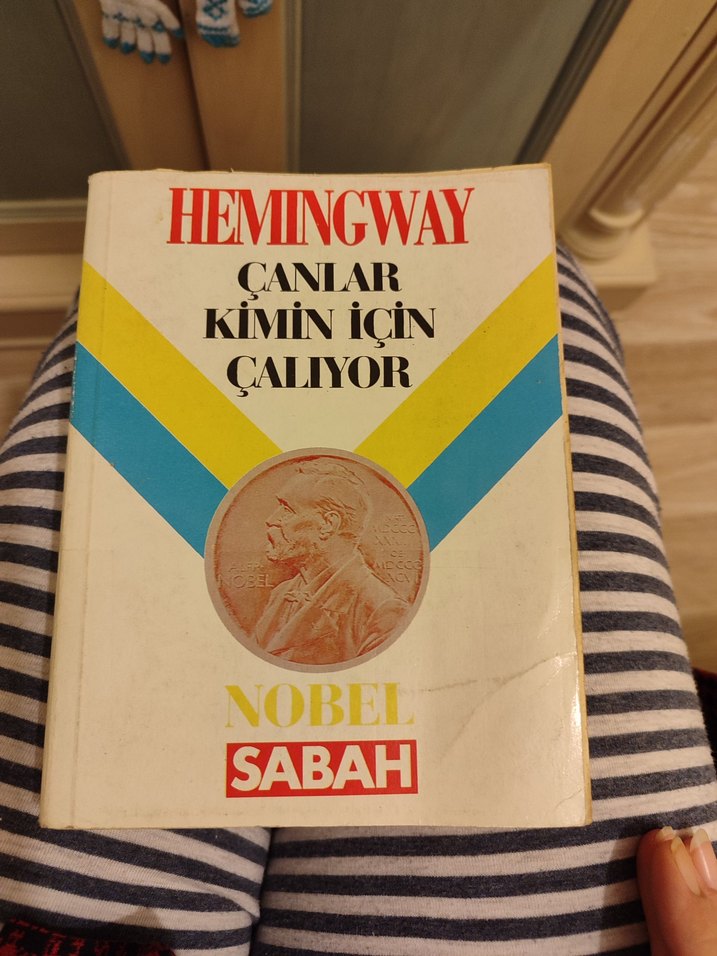 Hemingway'in Çanlar Kimin İçin Çalıyor adlı romanı, Nobel ödüllü klasik bir eserdir. Kapakta Nobel madalyonu ve Sabah yayınevi yer alır.