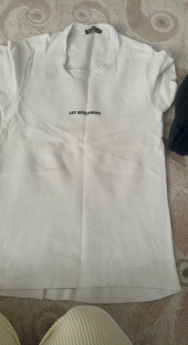 Önde 'LES BENJAMINS' yazılı baskılı beyaz tişört