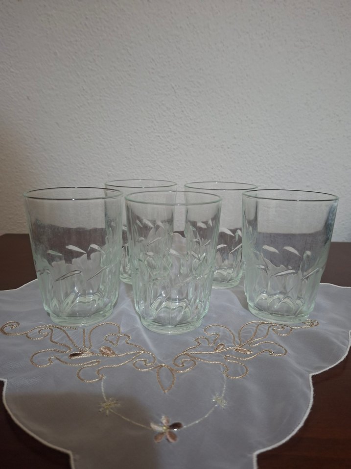 5 adet su bardağı.4 tanesi buğulu,biri temiz.Sirkeli suyun içinde kaynatıp soğuyana kadar 1 gün bekletince epey çıkıyor.Fazla bardağım olduğu için satıyorum. #su bardağı #bardak
