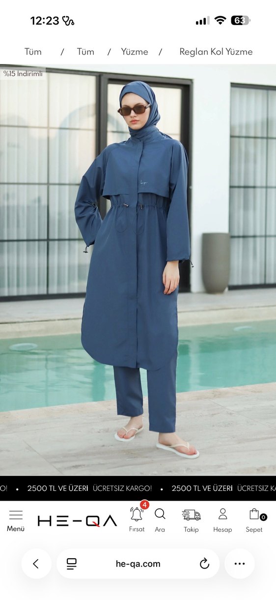 42 beden HEQA markalı tesettür yüzme takımı | Haşema Sadece 1 kez kullandım, büyük geldiği için satıyorum. Pantolon, tunik ve şal dahildir. Elimdeki üründe model farklı var, en son 2 fotoğrafta mevcut.