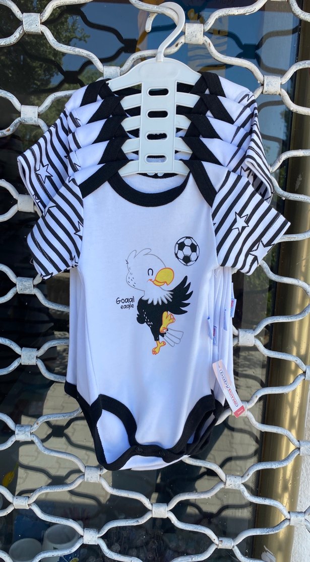 Kısa kollu, yuvarlak yaka pamuklu erkek bebek body. Renkli baskılı ve esnek detaylı, rahat kullanım sağlar. ⚽