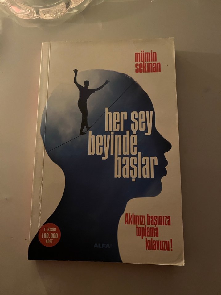 Yazarından imzalıdır. Fotoğrafta mevcuttur.Mümin Sekman'ın Her Şey Beyinde Başlar kitabı, zihninizi düzenlemeniz için pratik rehberlik sunar. Akıl ve odaklanmayı artırmaya yardımcı olur.