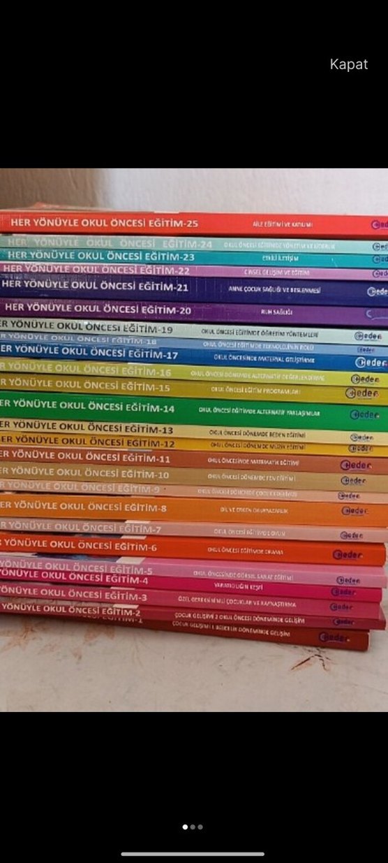 Okul öncesi eğitimle ilgili gelişim, sağlık ve öğrenme yöntemlerini içeren 25 renkli eğitim kitabı seti.