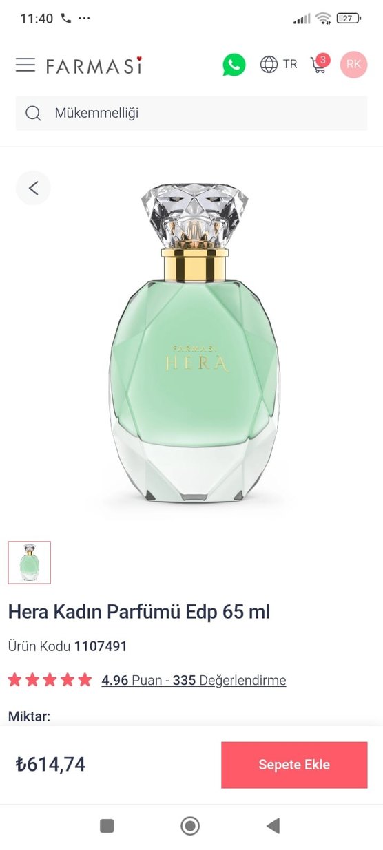 Hera kadın parfümü, 65 ml Eau de Parfum konsantrasyonunda. 335 yorumla 4.96 yıldız almış. Kristal görünümlü kapaklı şık tasarım.