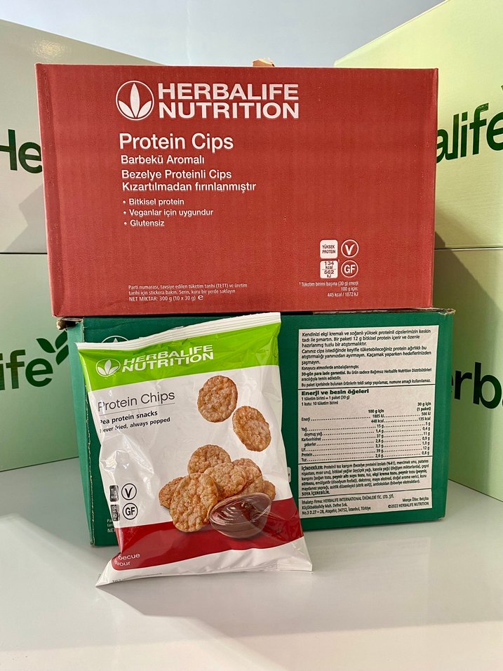 Barbekü aromalı, bezelye proteinli, kızartılmadan hazırlanmış, glutensiz ve vegan dostu Herbalife protein cips.