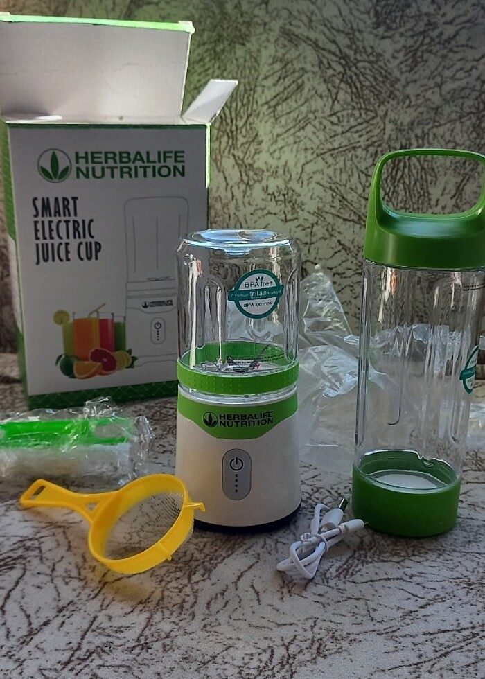 Herbalife smart electric juice cup Akıllı elektirikli meyvesuyu sıkacağı aynı zamanda blender su matarası eleği sarj kablosu kılavuzu ve temizleme aparatları içindedir. Ürün hiç kullanılmadı ve kutusundan sadece resim çekilmek için çıkartıldı tertemiz orjinal bir üründür. alana şimdiden hayırlı olsun diğer ürünler için sayfama bakabilirsiniz. iyi günler dilerim