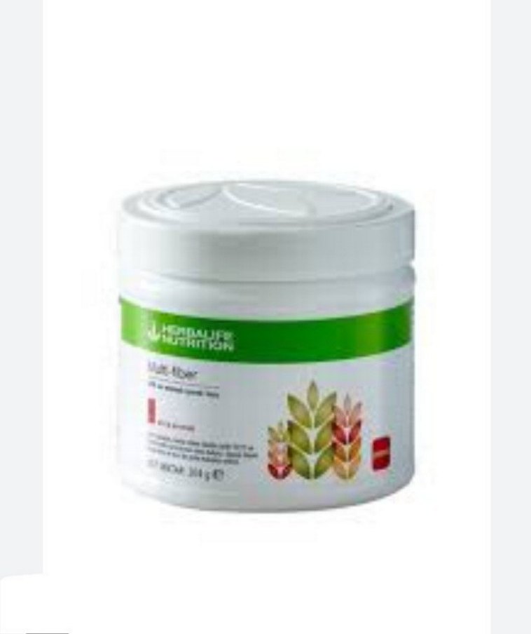 Herbalife Multi-Fiber takviye, sindirim sağlığını desteklemek için beyaz kapta yeşil etiketli üründür.