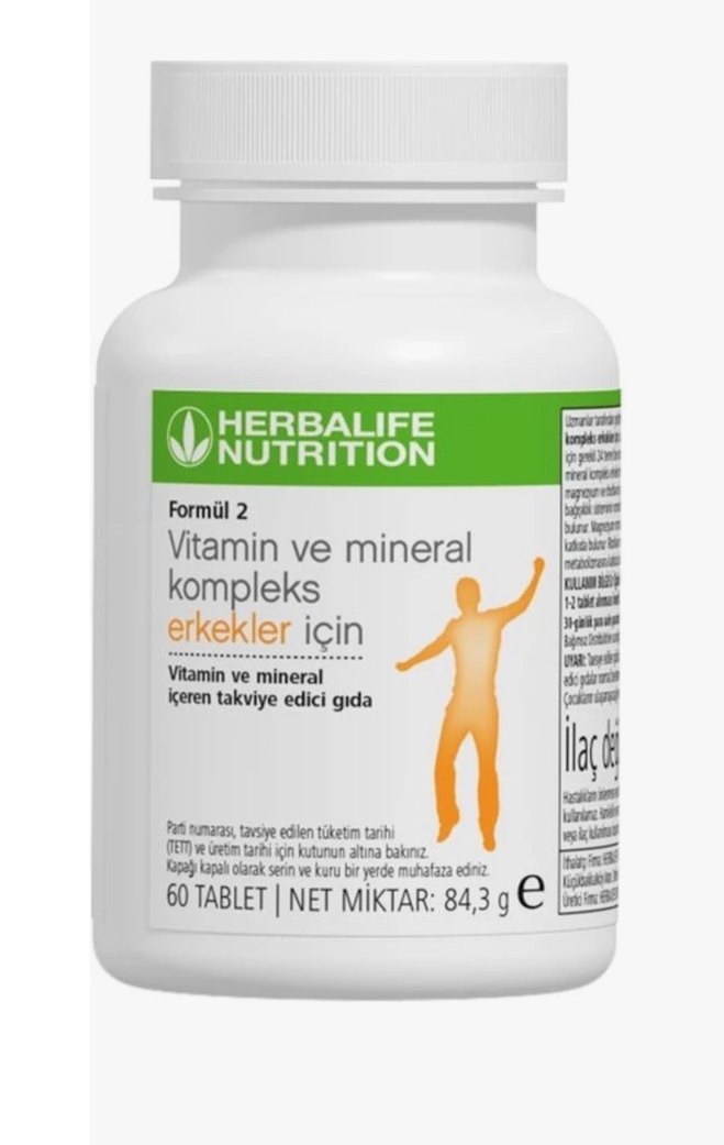 Herbalife Nutrition erkekler için vitamin ve mineral kompleksi, 60 tabletlik şişede sunulur. Günlük beslenme desteği sağlar.