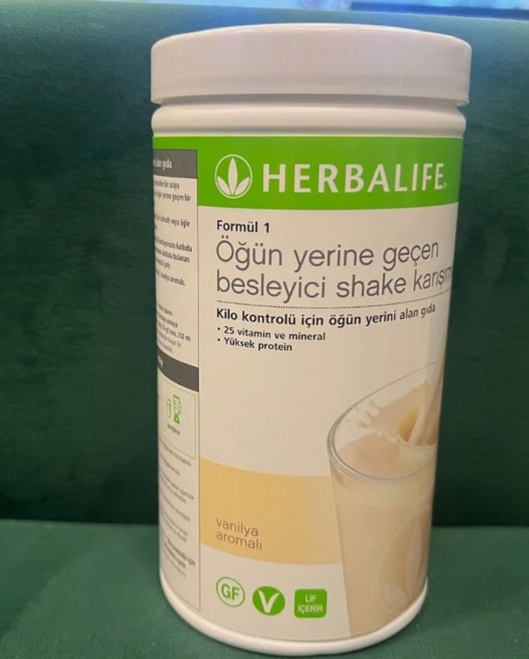 Herbalife Formül 1 vanilya aromalı shake karışımı, 25 vitamin ve mineral ile yüksek protein içerir. Kilo kontrolü için öğün yerine geçer.