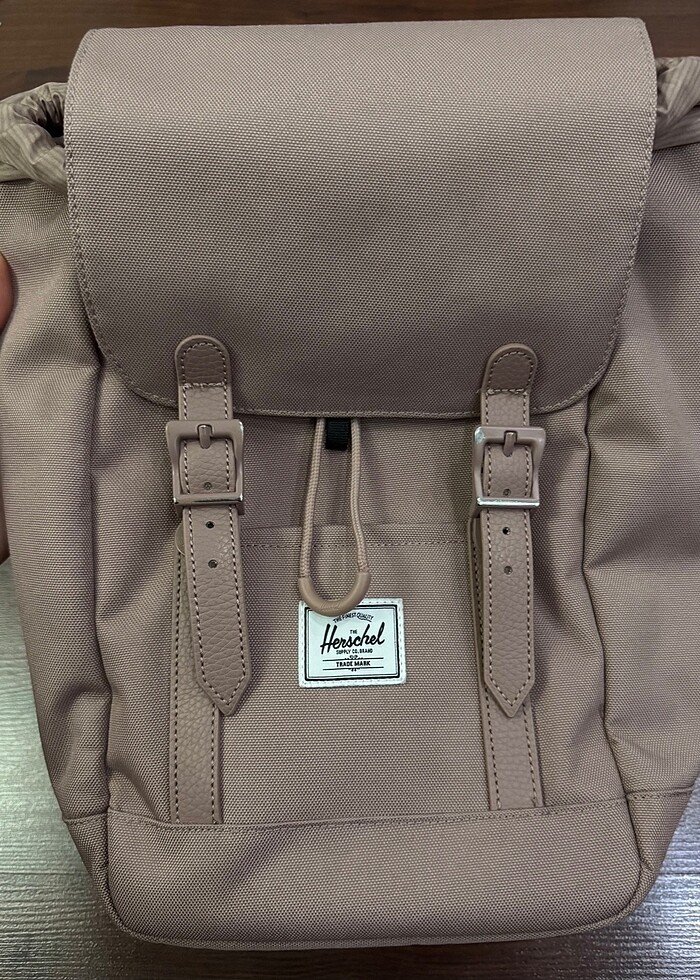 Herschel Retreat Unisex Mini Pembe Sırt Çantası 29 cm (Y) x 23 cm (G) x 13 cm (D) ölçülerinde ve 10L hacimli Çok az kullanılmış. Kemer yerleri hafif soyuldu sadece. Fotograflarda belli oluyor. İade kabul etmiyorum.