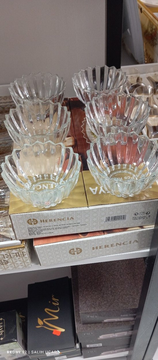 Herencia marka, şeffaf ve dalgalı kenarlara sahip cam kase seti, hafif ve şık tasarımıyla tatlı veya atıştırmalıklar için uygundur.
