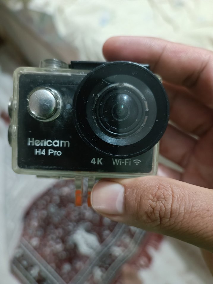 Hericam H4 Pro siyah aksiyon kamerası, 4K çözünürlük ve Wi-Fi bağlantısı sunar. uzaktan kumandası ile gönderim sağlanacaktır. başka aksesuarları yok. bunu bilerek alım yapın.
