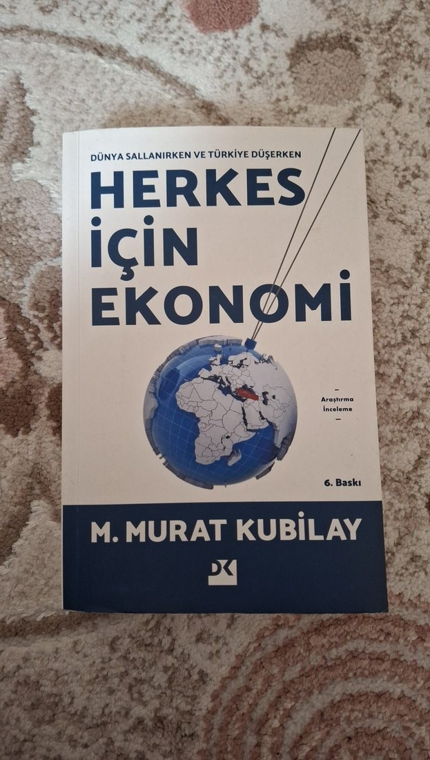 M. Murat Kubilay'ın 6. baskı araştırma kitabı Herkes İçin Ekonomi, dünya ekonomisindeki değişimleri ve Türkiye'nin konumunu inceliyor. İlk sayfada yazılar ve bir iki sayfasında fosforlu kalemle çizilmesi dışında tamamen sağlam bir kitap.