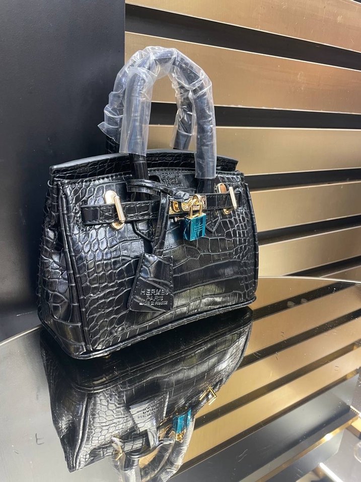 Hermes birkin 20 cm Siyah Yılan Desenli Deri Çanta