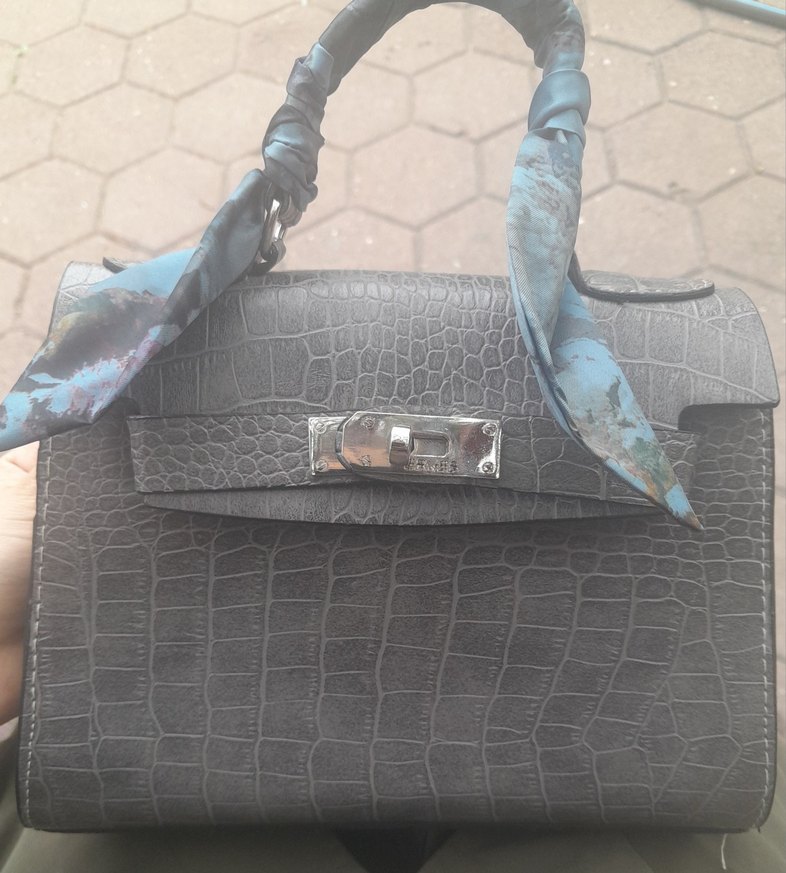 top quality ithal Gri yılan desenli deri kadın çantası. Sapı fularla