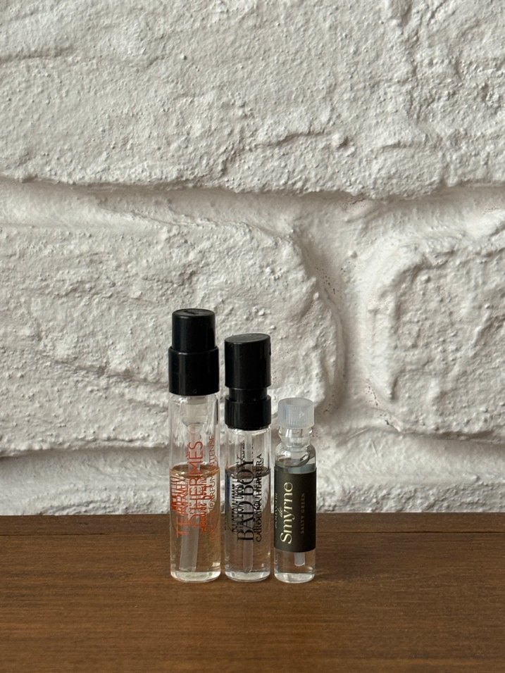 HERMES-Terre d’hermes EDP intense (şişe 2 ml) CAROLINA HERRERA-Bad Boy EDT (şişe 1.5 ml) SOUVENIR DE SMYRNE-Salty Green (şişe 1 ml)