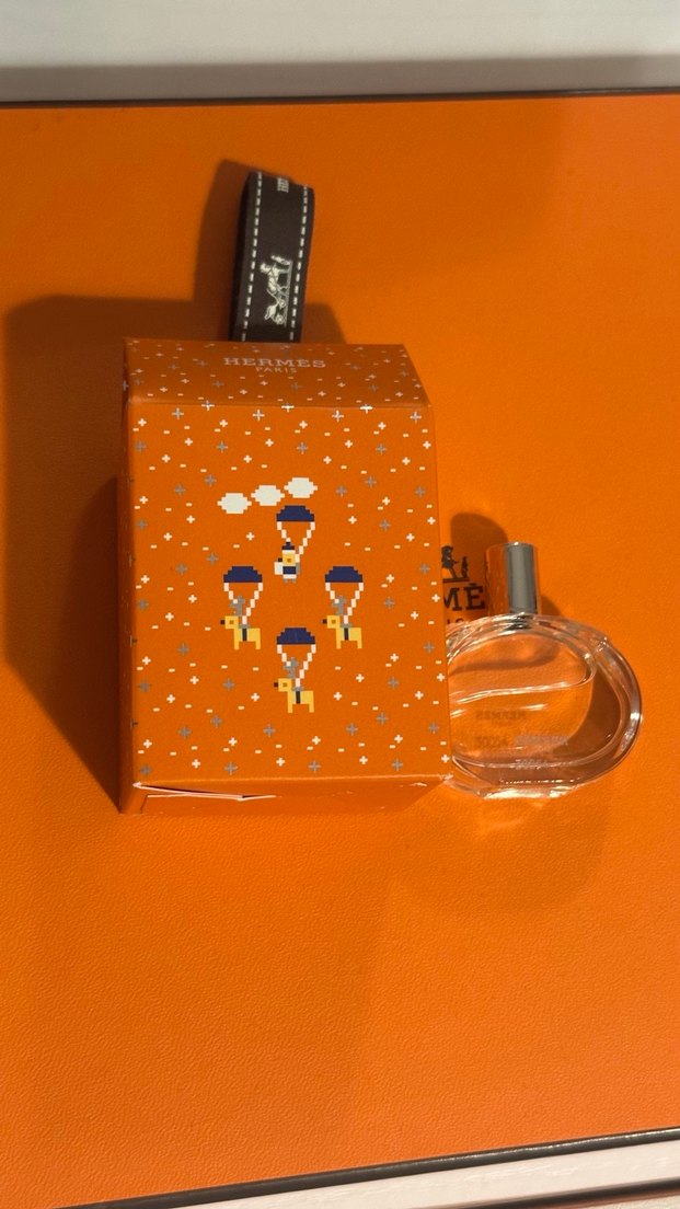 Hermès markasına ait, sıcak hava balonu desenli turuncu kutusunda mini boy kadın parfümü. Zarif ve hoş bir koku sunar.7,5 ml
