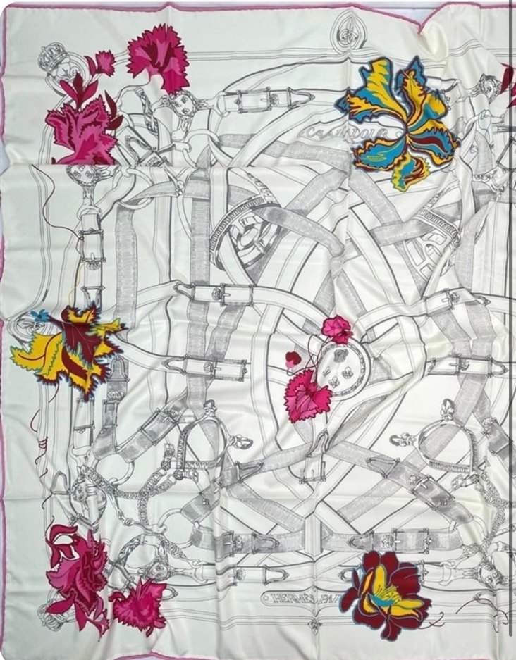 Renkli ve zincir detaylı, %100 ipek hermes şal