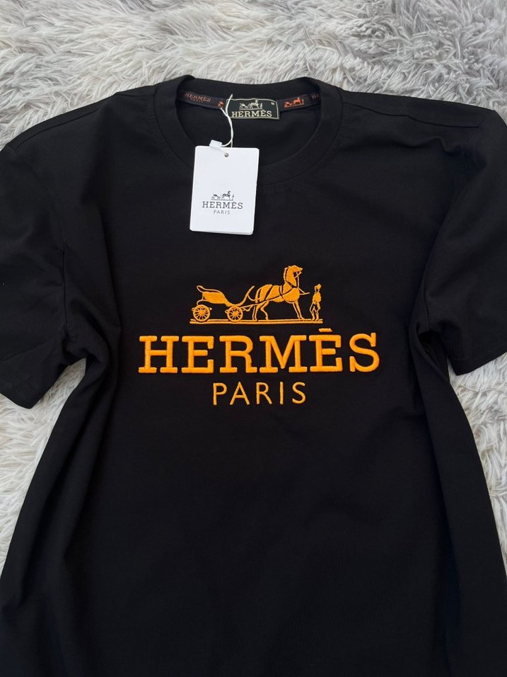 Hermes Paris Baskılı Siyah Kısa Kollu Tişört