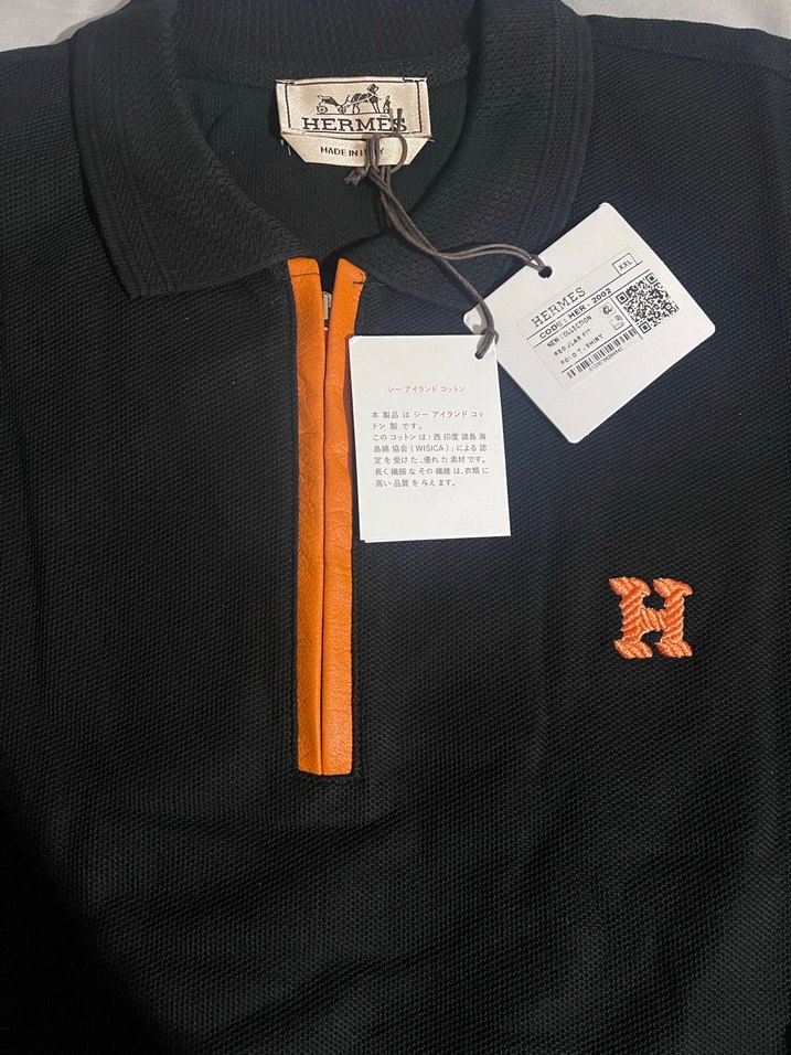 Turuncu baskılı fermuar detayı ve işleme turuncu logo ile siyah polo yaka tişört. Klasik yaka ve Hermes marka etiketi bulunur. %100 ORJİNAL ÜRÜNDÜR YENİ MODA DEĞİL ESKİ SEZON ÜRÜNDÜR BEĞENMEDİĞİNİZ TAKTİRDE İADE ALIYORUM GÜMRÜKTE ÖDEMESİ YAPILMAYAN HACİZLİ ÜRÜNDÜR BU YÜZDEN FİYAT UYGUNDUR