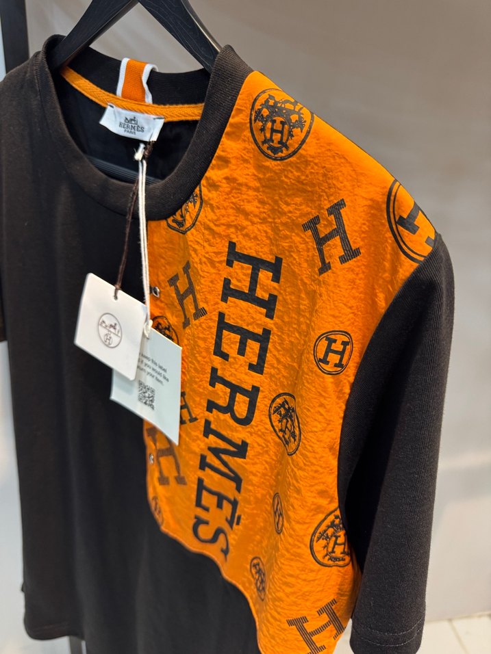 Hermes Siyah Turuncu Uzun Kollu Oversize Tişört