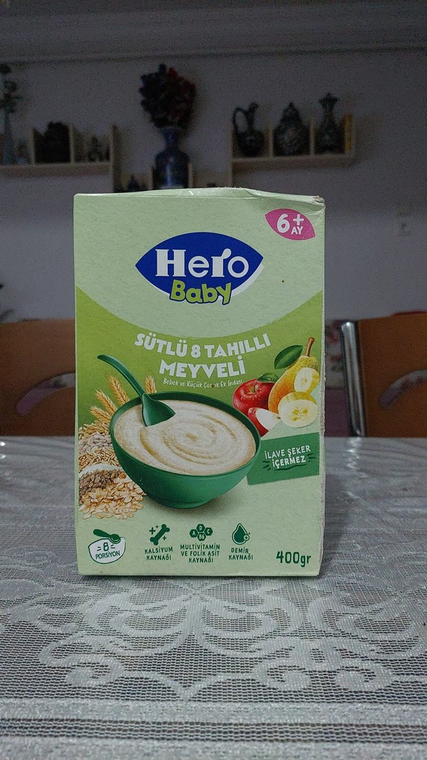 6+ ay bebekler için Hero Baby sütlü tahıllı meyveli mama. İlave şeker içermez, multivitamin ve folik asit kaynağıdır. 400 gr. sıfır kuruludur nette 200 gr bu fiyat ücreti gazzeye gidecek evol olanda bitmek üzere çocuk yermi diye denemek isteyene yaninda ücretsiz gönderilecek