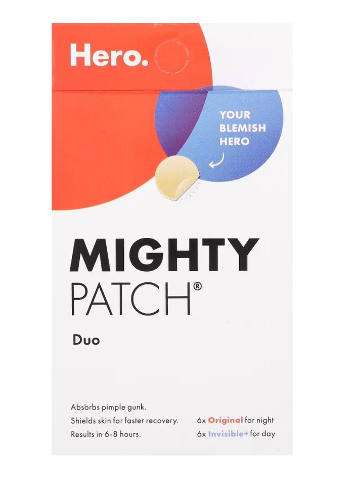 Hero Mighty Patch Duo, gece için 6 adet orijinal ve gündüz için 6 adet görünmez sivilce bandı içerir. Kirleri emer, cildi korur ve 6-8 saatte sonuç verir. ️