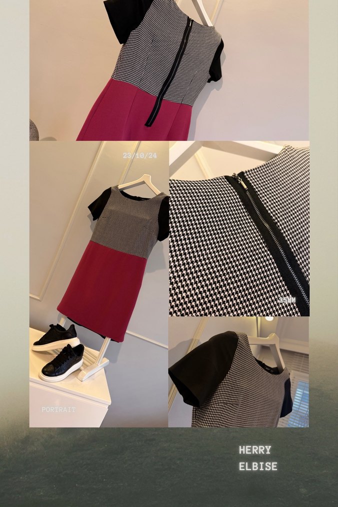 Modern şehir şıklığını sofistike detaylarla buluşturan Herry elbise, güçlü duruşu ve zamansız tasarımıyla stilinizi tek hamlede yükseltir. Üst bölümdeki klasik kazayağı desen, siyah kısa kollarla dengelenirken; etek kısmındaki derin pembe tonu elbiseye asil ve iddialı bir karakter kazandırır. Önü kısa, arkası daha uzun asimetrik kesimi sayesinde hareketli ve modern bir siluet sunar. Vücuda oturmayan, rahat ama formunu koruyan yapısı gün boyu konfor sağlarken; ofisten davete, gündüzden akşama zahmetsiz şıklık vadeder. Sneaker ile cool, topuklu ayakkabı ile elegan bir görünüm elde edebilirsiniz. Minimal detaylarla maksimum etki yaratmak isteyenler için tasarlanmış bu elbise, zamansız bir gardırop yatırımıdır. Ürün Özellikleri: • Marka: Herry • Ön Boy: 80 cm • Arka Boy: 90 cm • Omuz: 40 cm • Göğüs: 45 cm • Kesim: Asimetrik (arkası uzun) • Desen: Üst kazayağı, alt düz renk Stil Notu: Tek parçada güçlü bir görünüm arayanlar için ideal. Az aksesuarla bile fark yaratır.