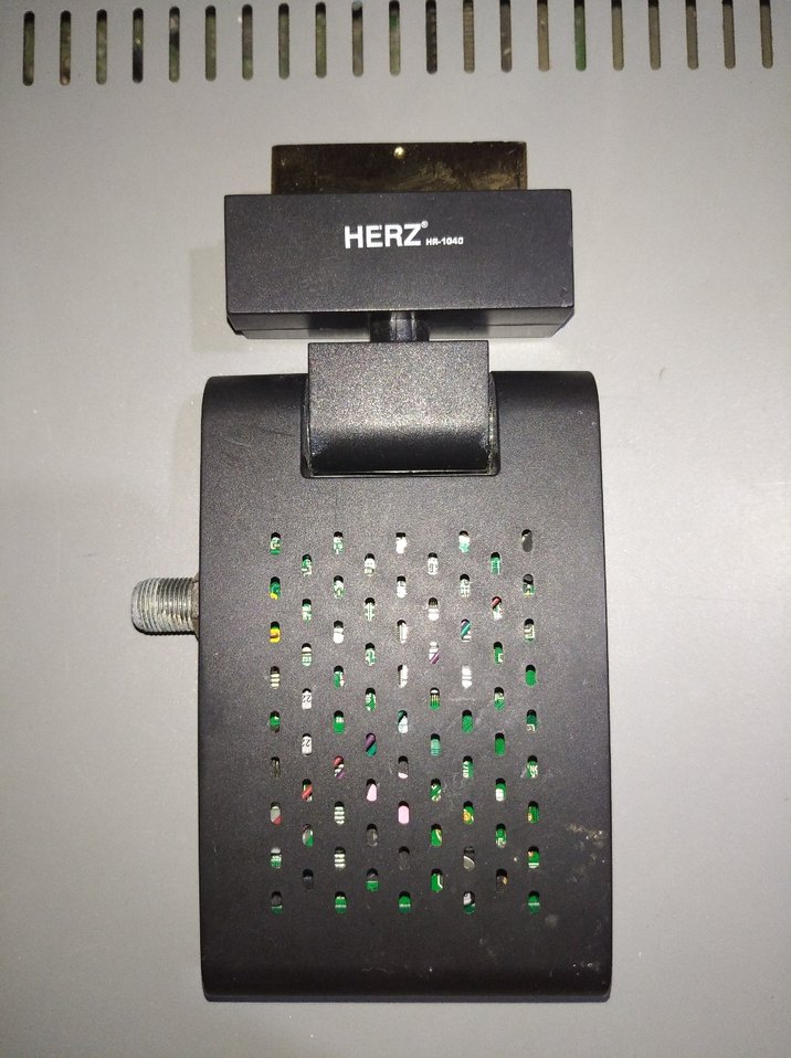 HERZ HR-1040 Mini Uydu Alıcısı, havalandırma delikleri ve sinyal bağlantısı için koaksiyel giriş ile kompakt tasarıma sahiptir. Standart uydu TV alımını destekler.Kullanılabilir parçaları için satılık.