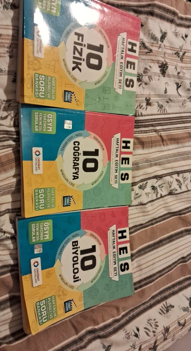 HES Haftalık Eğitim Seti, 10. sınıf Fizik, Coğrafya ve Biyoloji dersleri için ÖSYM tarzı soru ve testler içerir.