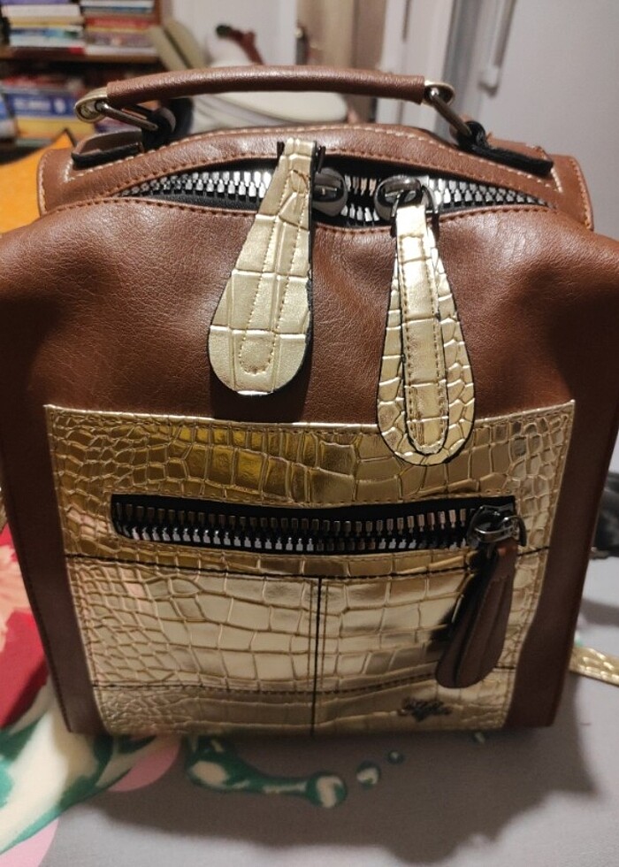 "Heybeci taba rengi çanta. Hem kol askılı hem sırt askılı, çok şık ve kaliteli bir model. Hiç kullanılmadı, tamamen yeni durumda. Geniş ve kullanışlı. Orijinal fiyatı yüksek olduğu için uygun fiyata veriyorum. 850 TL.