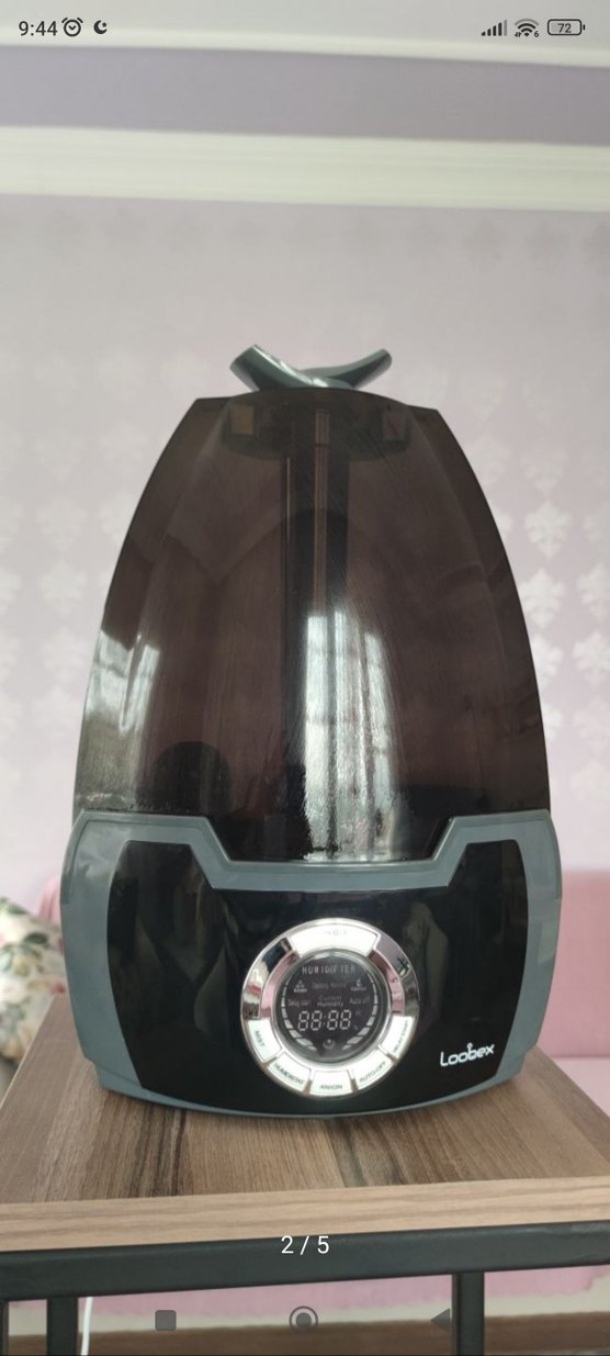 Dijital ekranlı, gri renkli nemlendirici. Görünür su haznesi ve kullanımı kolay kontrolleri bulunur. Loobe markası. ️