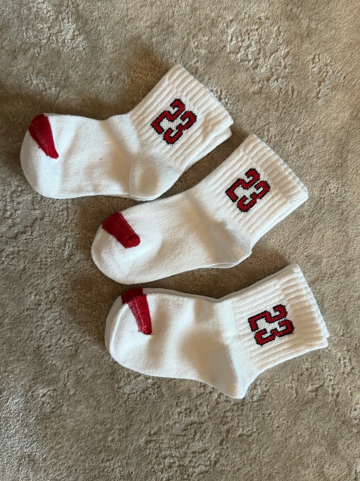 Hiç kullanılmamış 22-24 numara 3 çift beyaz çorap. Üst kısmı kendinden çizgilidir. Pamuklu çoraptır. #çocukçorap