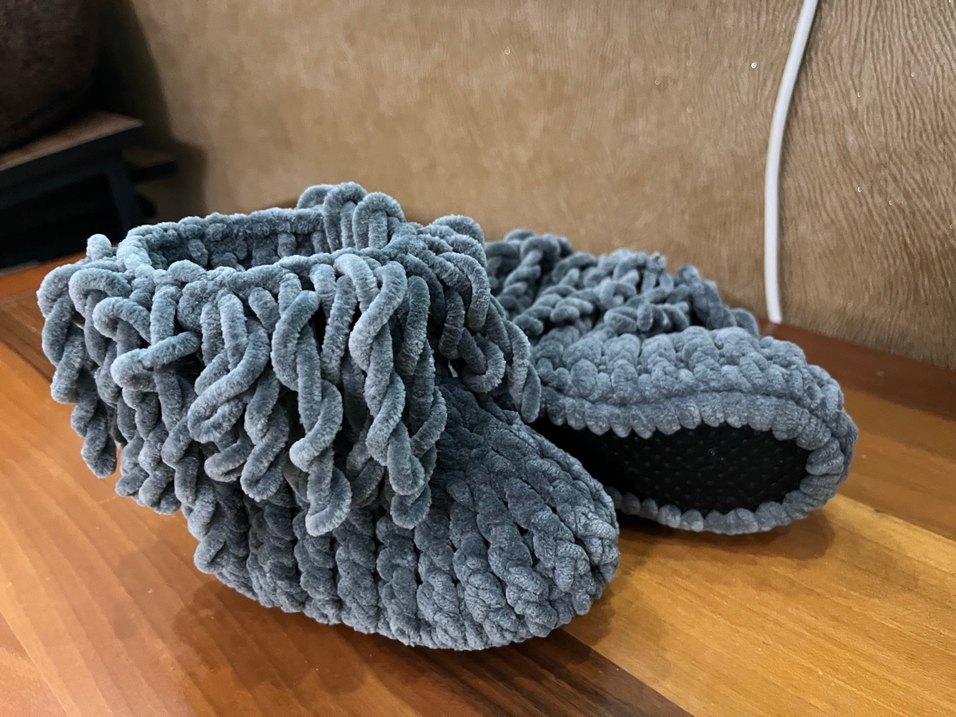 Hiç kullanılmamış Çocuk Gri Örgü Sıcak Ev Terliği