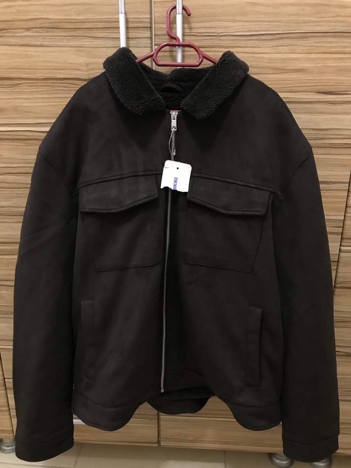 Hiç kullanılmamış, Etiketli, Siyah Süet Erkek Ceket, Fermuarlı,