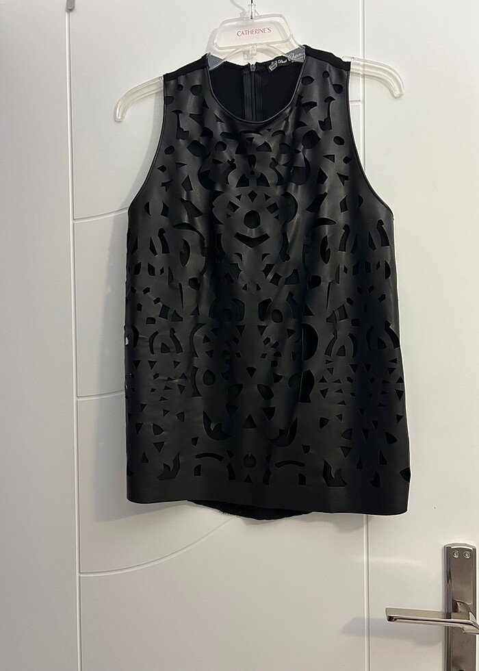 Ön kısmı deri lazer kesim arkası fermuarlı üzerine oturan bir model arka kısmı viskon kumaş M beden