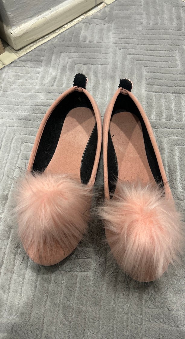 Pembe, kürklü detaylı, dolgu topuklu kadın babetler. Yumuşak ve rahat yapısıyla günlük kullanıma uygundur.