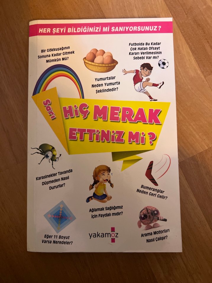 Hiç Merak Ettiniz Mi? adlı çocuk kitabı, yumurtaların neden şekilli olduğunu ve arama motorlarının nasıl çalıştığını gibi merak edilen soruları anlatıyor. Eğlenceli bilgiler içerir.