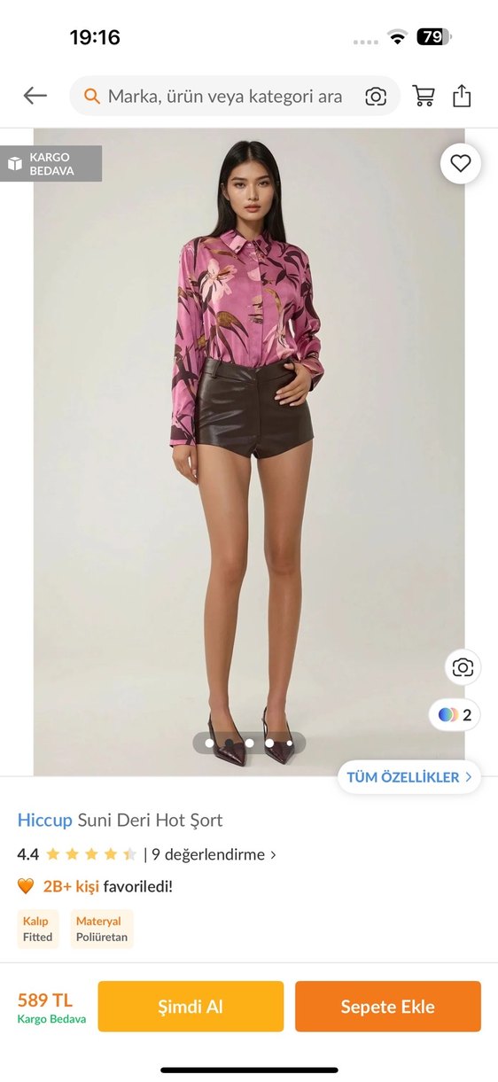deri mini şort, düğmeli ön detay ve hafif batik desenle cesur ve modern bir görünüm sunar.