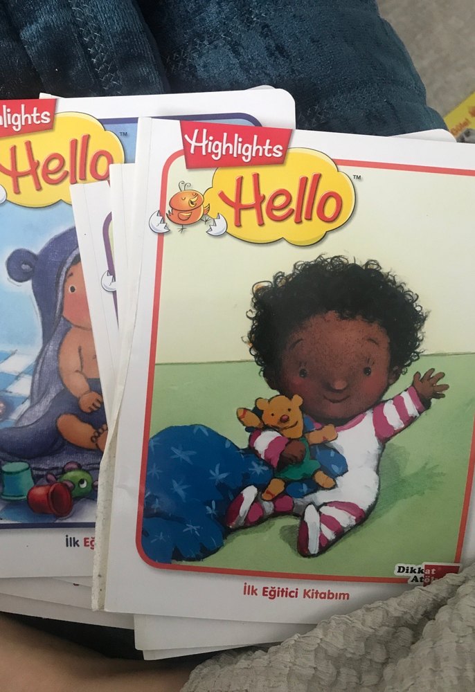 Highlights Hello çocuk kitapları seti, renkli çizimler ve erken eğitim için basit metinler içerir.