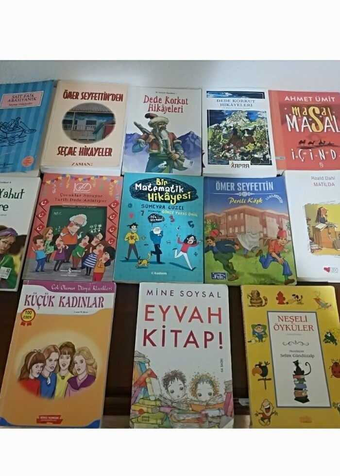 Fiyatlar değişiyor.Bilgi almak istediğiniz kitap için detaylı fotoğrafla yeni ilan açıcam.Matilda,masal masal içinde,eyvah kitap,bir matematik hikayesi yok.#neşeli öyküler #küçük kadınlar #perili köşk #vatan yahut silistre #dede korkut hikayeleri #ömer seyfettinden seçme hikayeler #sait faik abasıyanık #seçme hikayeler #çocuklar soruyor #tarih dede anlatıyor