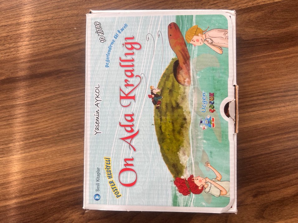 Üçgen yayıncılıktan 10 adet kitap. Temiz sağlam kutulu.3 ve 4.sınıf seviyelerine uygun.okul öğretmeniniz tavsiyesiyle almıştık.Yasemin Aykol'un renkli çizimlerle süslenmiş "On Ada Krallığı" çocuk kitabı, ada maceralarını anlatıyor. Nette fiyatı 400 TL.