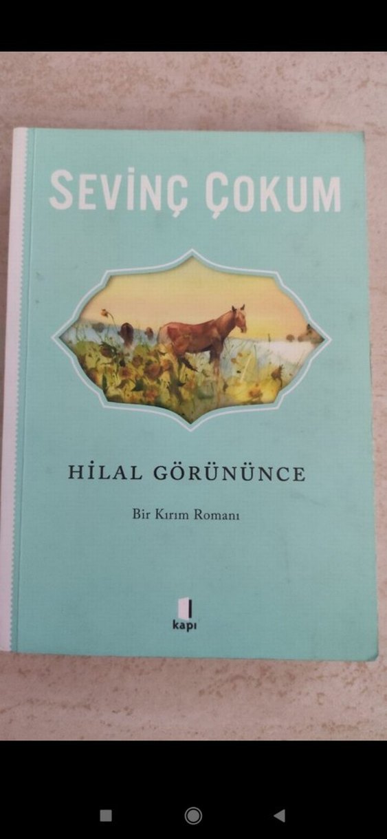 Sevinç Çokum'un Hilal Görününce adlı Kırım romanı. Kapakta bir atın olduğu doğa manzarası yer alıyor.