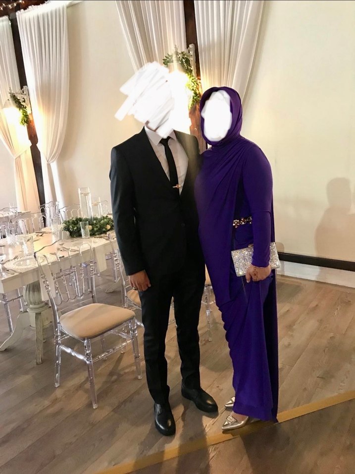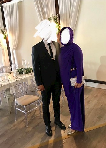 Yalnızca bir kez kızımın düğününde giydim. Kullanımı çok rahat ve şık bir elbise. 40-42-44 beden uyumludur. Taşlı bel kemer aksesuarı ve tam uyumlu mor eşarp ile birlikte gönderilecektir.