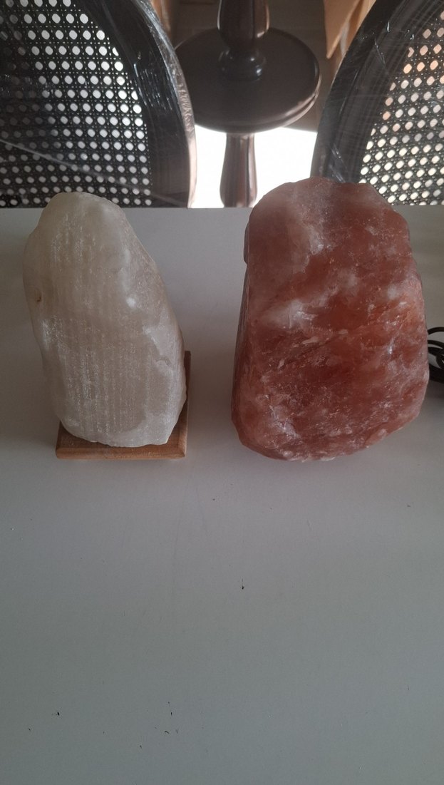 Ahşap tabanlı, yumuşak ve sıcak ışık veren iki doğal bej kaya tuzu lambası. Ortam aydınlatması için uygundur. ️çalışır durumda.hiç bir sorunu yok.iade kabul edilmez.#lamba #gecelambası #tuzlambası