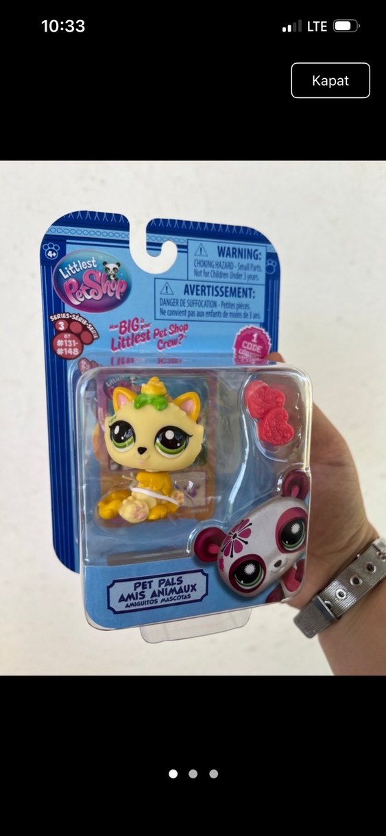Orijinal ambalajında, aksesuarlarla birlikte gelen açık pembe Littlest Pet Shop figürü. Uyarı etiketleri içerir #Himalaya miniş #Petshop .