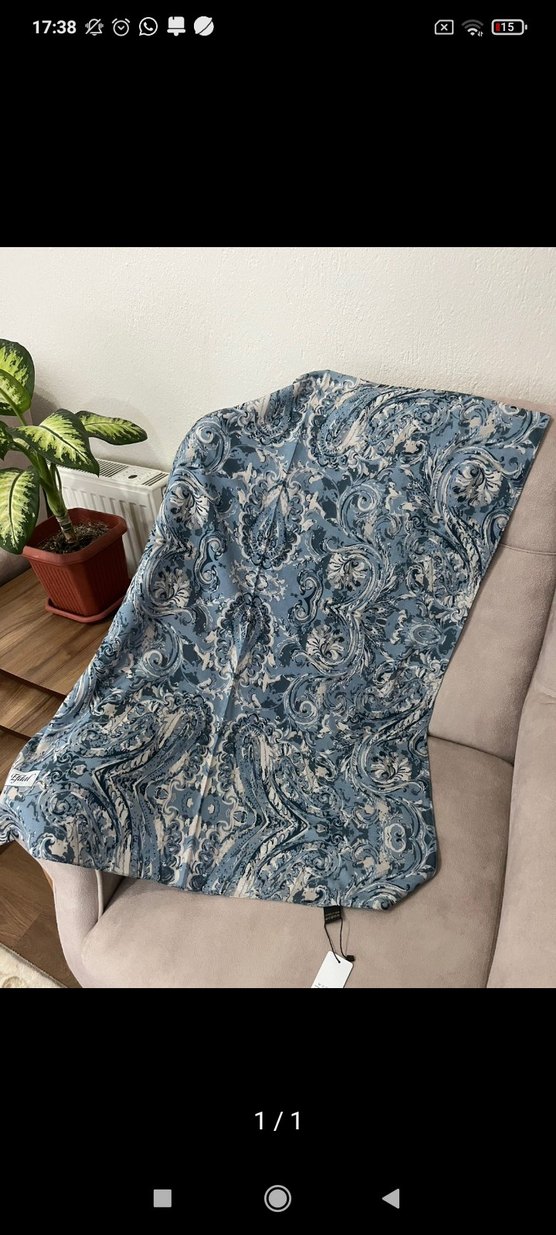 ikinci ürüne yüzde yirmibes indirim kampanyam var Mavi ve gri tonlarında, drapeli tasarıma sahip kadın şalı. Bohem, rahat ve retro tarza uygun bir modeldir.