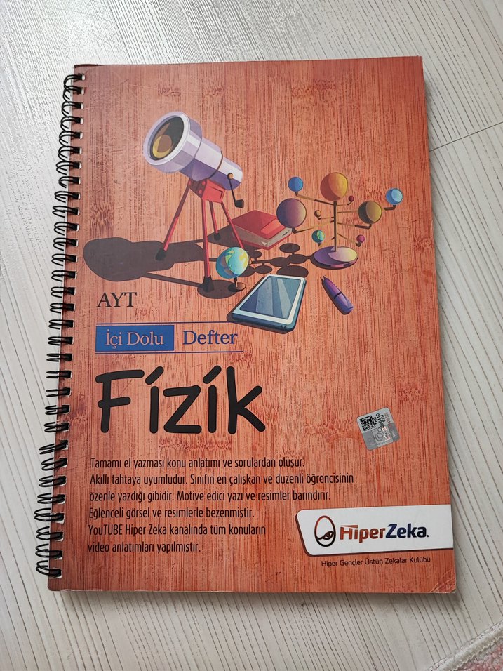 HiperZeka Fizik defteri, AYT için konu anlatımı ve sorular içerir. Yazılar net, görsellerle desteklenmiş ve içi doludur. içerisinde bazı sayfalara notlar alınmıştır.